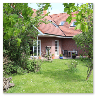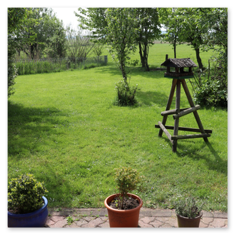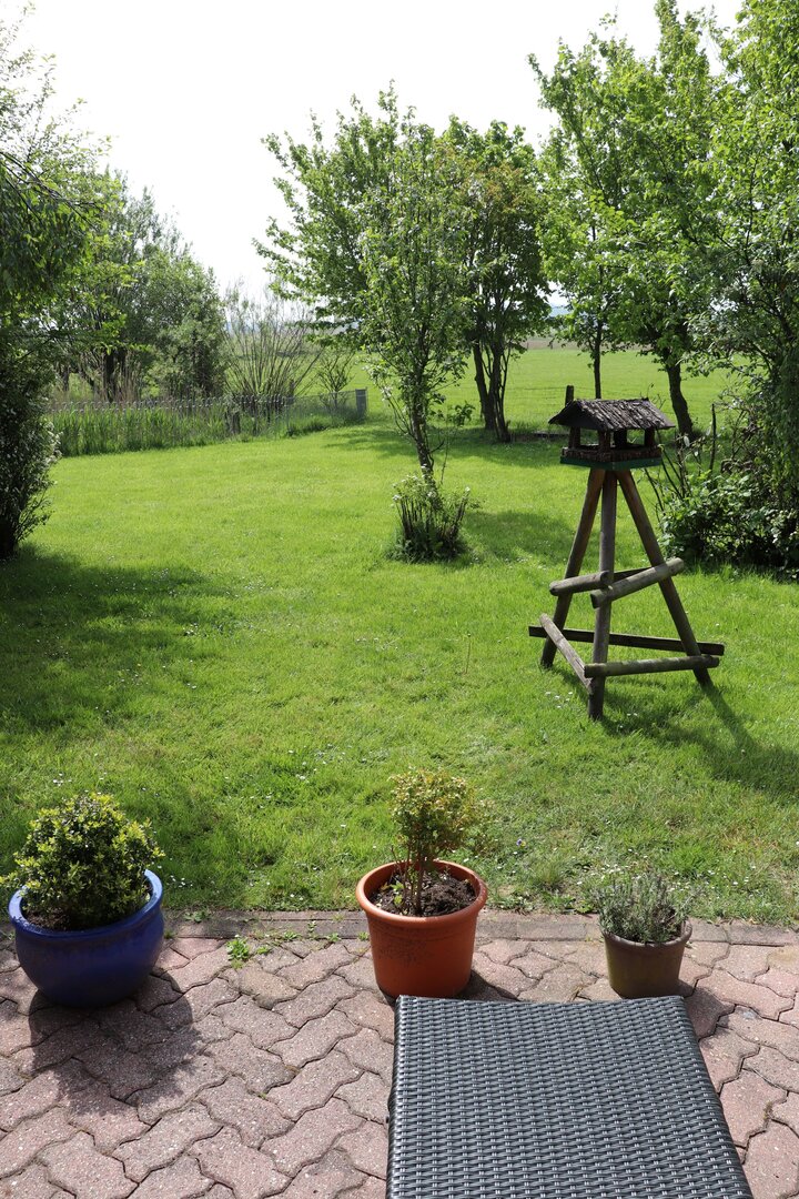 Wenn der Strand einmal nicht rufen sollte, lässt es sich in unserem Garten wunderbar mit ungetrübtem Blick über die Felder und Schafe entspannen und relaxen.