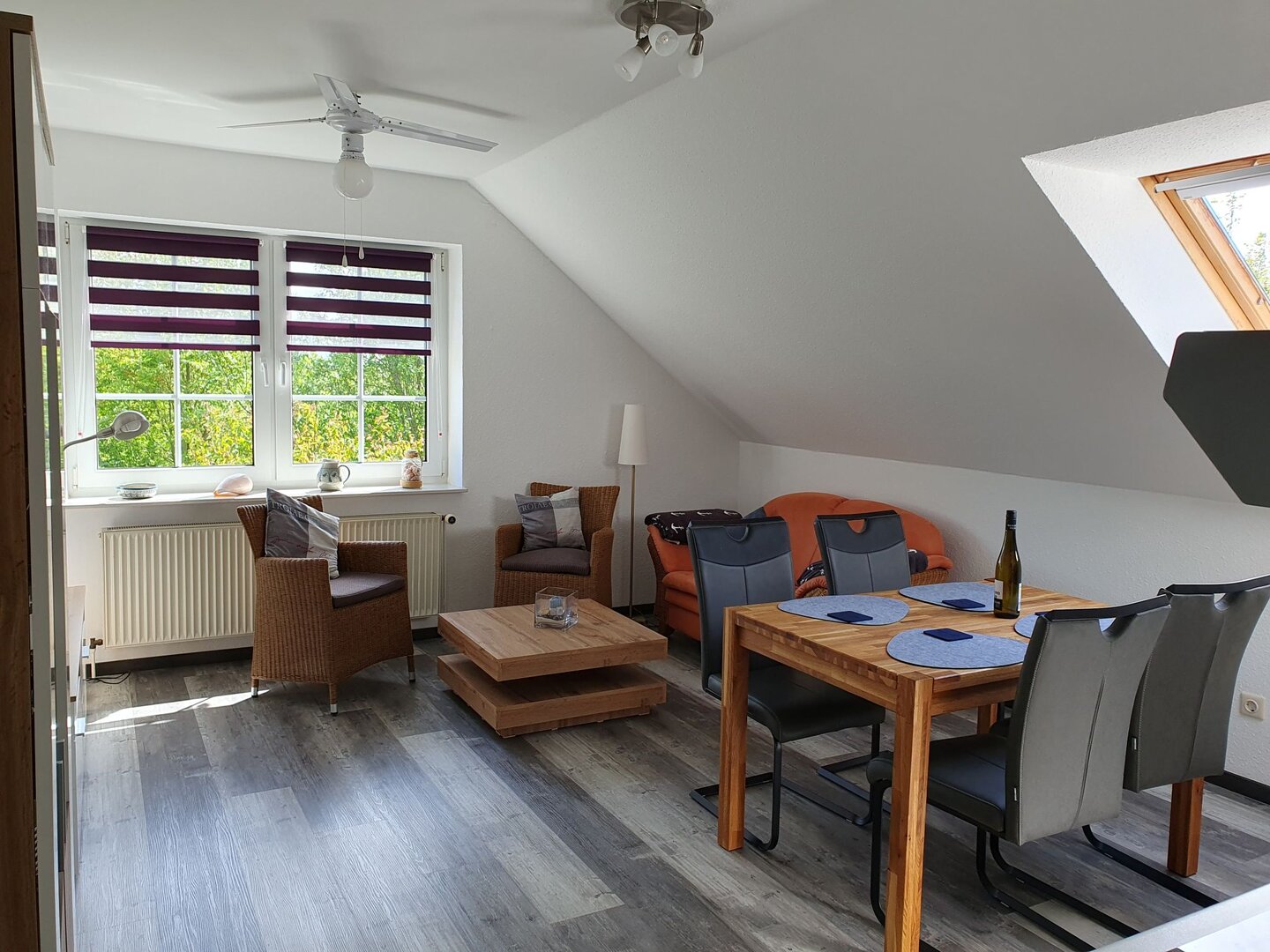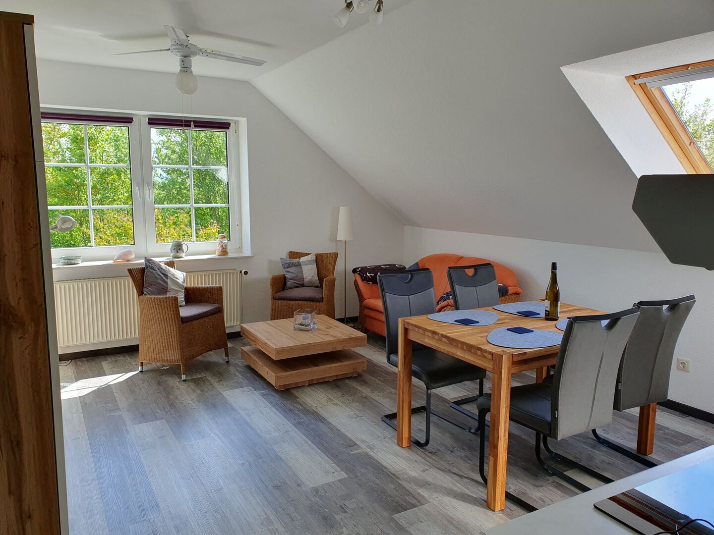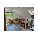 Idyll 1 ist die kleinste unserer drei Ferienwohnungen und eignet sich perfekt für Paare oder Einzelreisende, die Ruhe und Komfort suchen. Wie auch Idyll 2 befindet sie sich im ersten Stock von Nordstrand-Idyll und überzeugt durch charmante Dachschrägen mit besonders hohem Kniestock, die sofort eine heimelige Atmosphäre schaffen.